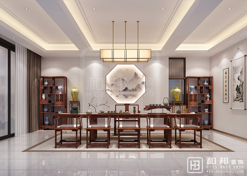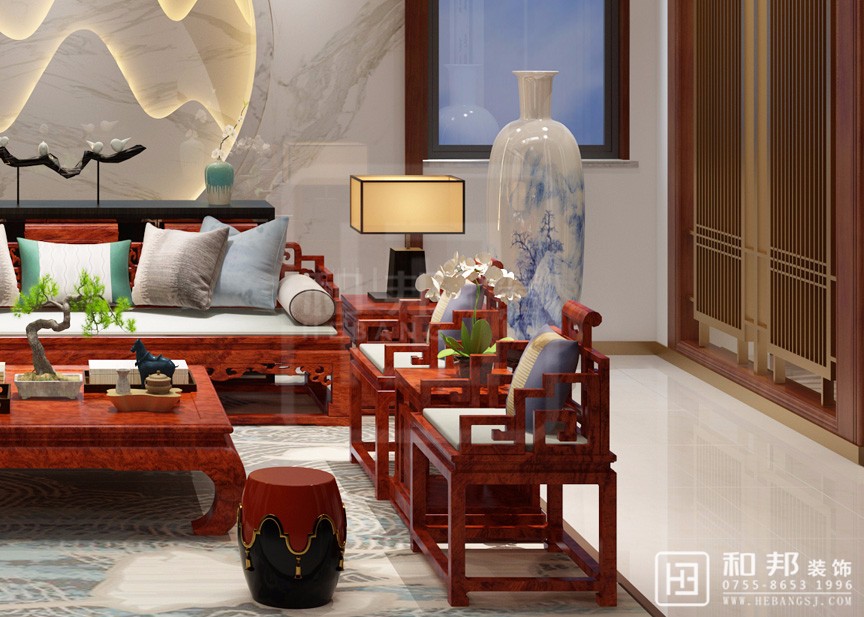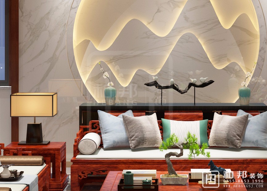 運用了中式的傳統(tǒng)元素,并與當代人的審美需求相融合,提煉了其中經(jīng)典元素并加以簡化和豐富。